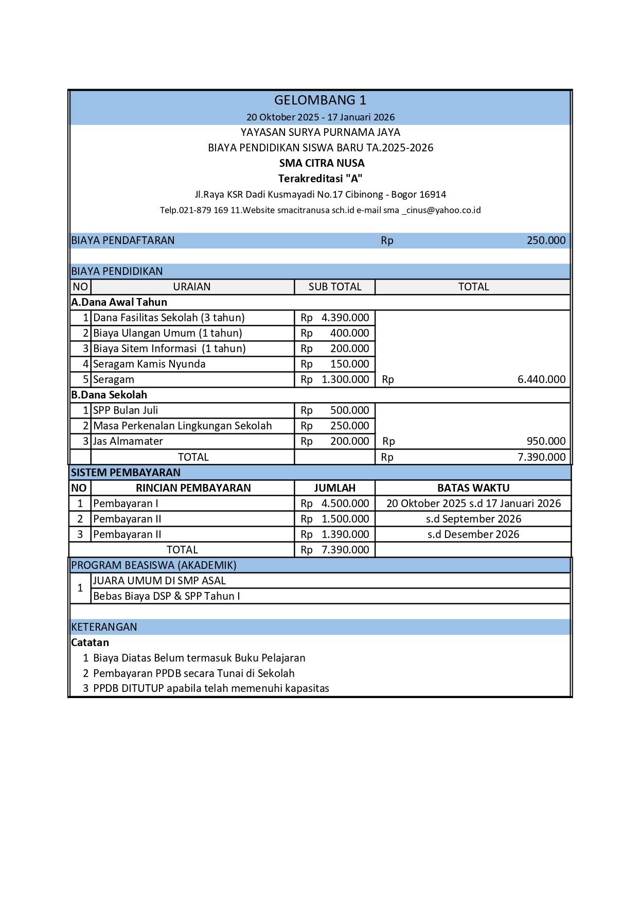BIAYA PPDB TAHUN AJARAN 2026/2027